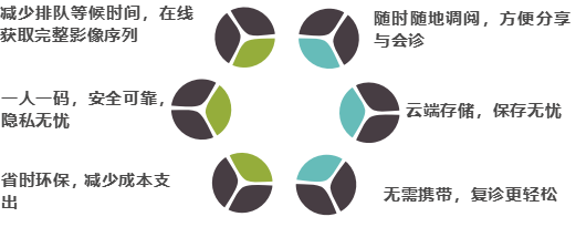 数字影像服务将“云胶片”升级到影像二次诊断功能水平,具备在线调阅、后处理、诊断的功能服务,方便院内医生进行医学影像的MPR、厚层调节、三维重建、影像融合等专业性操作。数字影像服务通常包含检查报告和全部原始影像。每个患者在云端都有一个专属的空间,患者可以通过扫描报告单中二维码在验证身份后浏览和下载,这是一份便捷、可供患者分享的电子病历。也就是说,今后在院内做X线、CT、磁共振等放射影像检查后,患者拿到的将不再是单一传统的“牛皮袋+医用胶片”,而是能长时间存在手机里的“数字影像报告”。